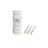Tiras reactivas para medir 3 parámetros esenciales: Cloro libre, pH y alcalinidad.