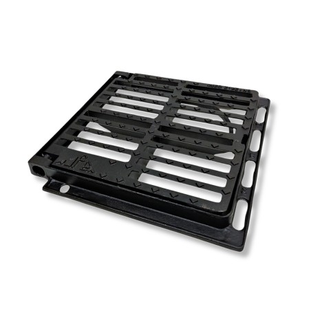 Conjunto de reja plana y marco, con bisagra y apertura abatible.